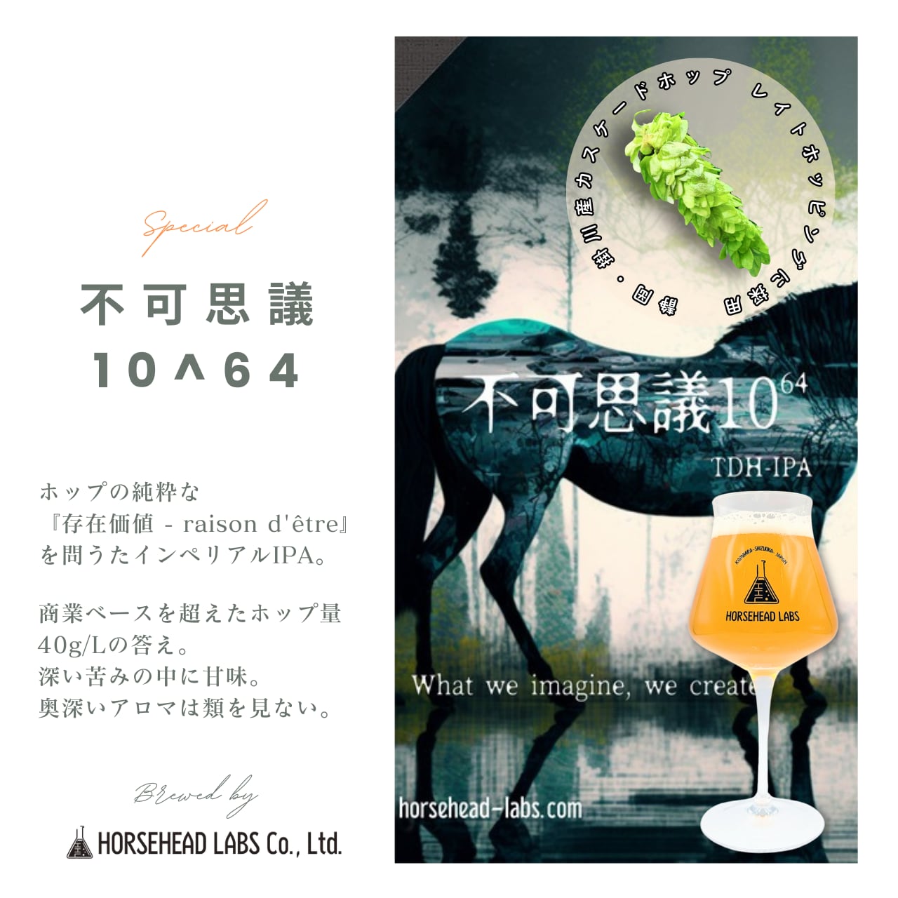 『「商業ベースなんてつまらない」と 醸造長が手間と採算度外視でただ作りたいモノをつくる』がコンセプトの奇奇怪怪な馬頭ブランドの旗手『不可思議10^64』。